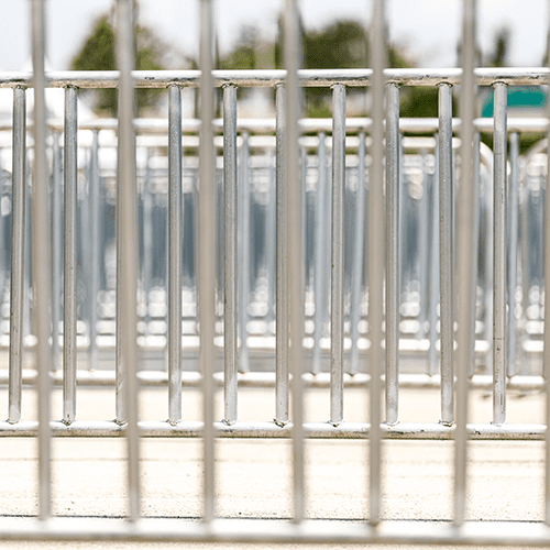 Our temporary barricades are free-standing and come with interlocking panels with a hook and sleeve system to ensure they can easily attach to one another to create a strong and durable barrier. Paired with flat T-stands to reduce tripping hazards and a seamless connection for secure and rigid barriers, our barricade rentals can help ensure you have a durable perimeter on your event grounds or job site.